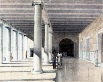 Πίνακας που αναπαριστά τη Στοά Αττάλου κατά την αρχαιότητα |