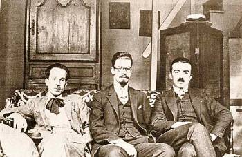 1923, στο Παρίσι. Από αριστερά: πρώτος ο Κ. Βάρναλης, με τους φίλους του Νίκο Χατζηκυριάκο - Γκίκα (δεύτερος) και Στρατή Ελευθεριάδη (Τεριάντ) |
